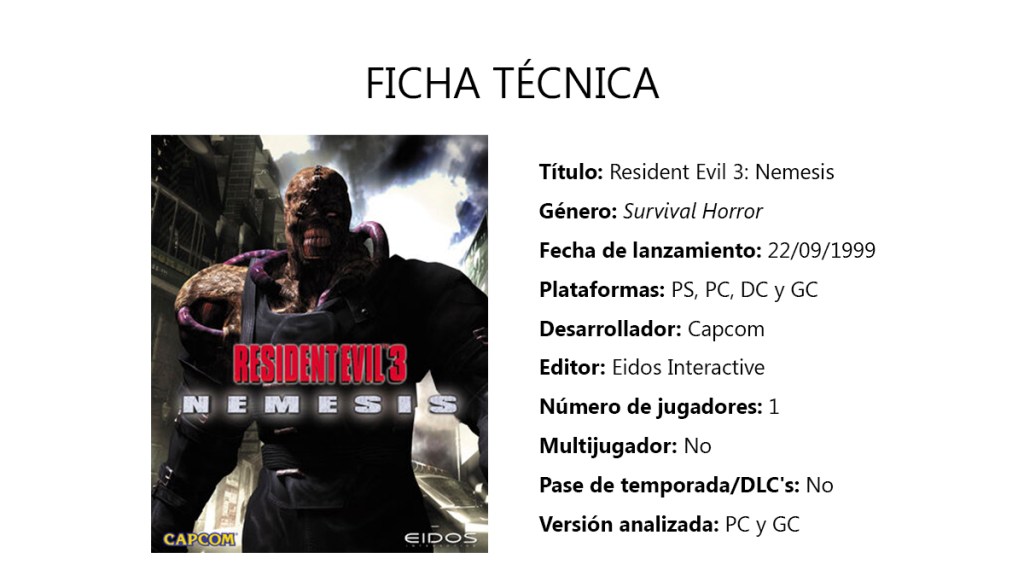 Resident Evil 3: Nemesis es un clásico y una excelente continuación de una Obra Maestra como es Resident Evil 2.