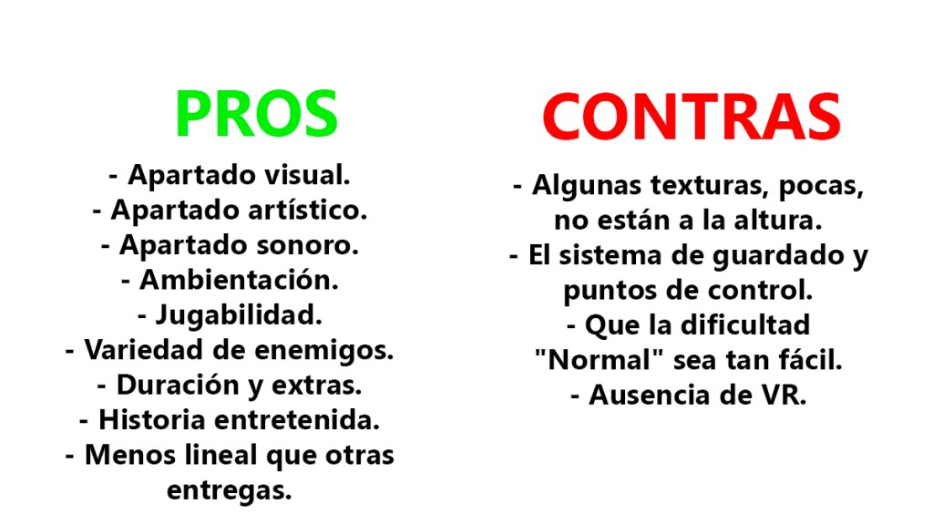 Una aventura llena de suspense, terror, algo de acción, y todos los ingredientes Survival Horror característicos de la franquicia. Siendo, además, una interesante evolución de lo visto anteriormente.
